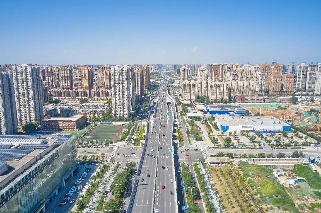 西安市會展中心外圍提升改善道路PPP項目廣安路快速化改造工程西起北二環(huán)辛家廟立交,東至東三環(huán)安邸立交,全長3.8公里,橋上設(shè)計雙向6車道,是十四運配套項目之一。