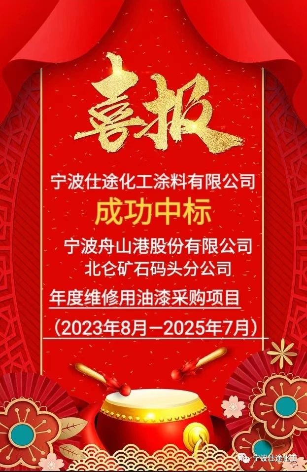 成功中標(biāo)!寧波仕途化工中標(biāo)舟山港北侖礦石碼頭“2023-2025年度維修油漆采購(gòu)”項(xiàng)目公開招標(biāo)!